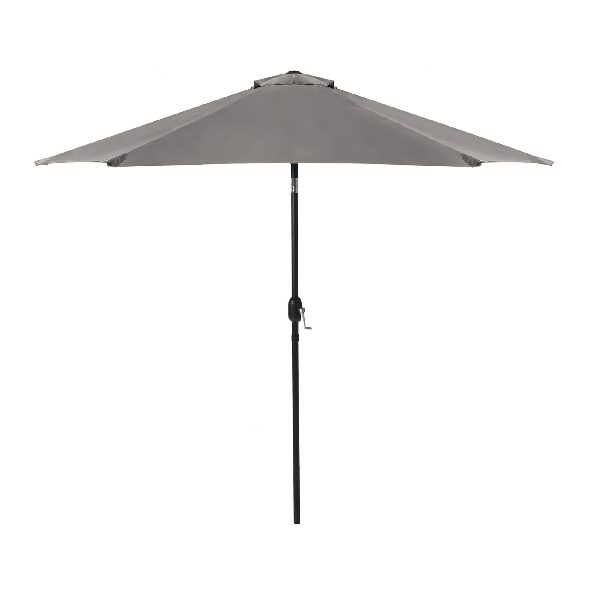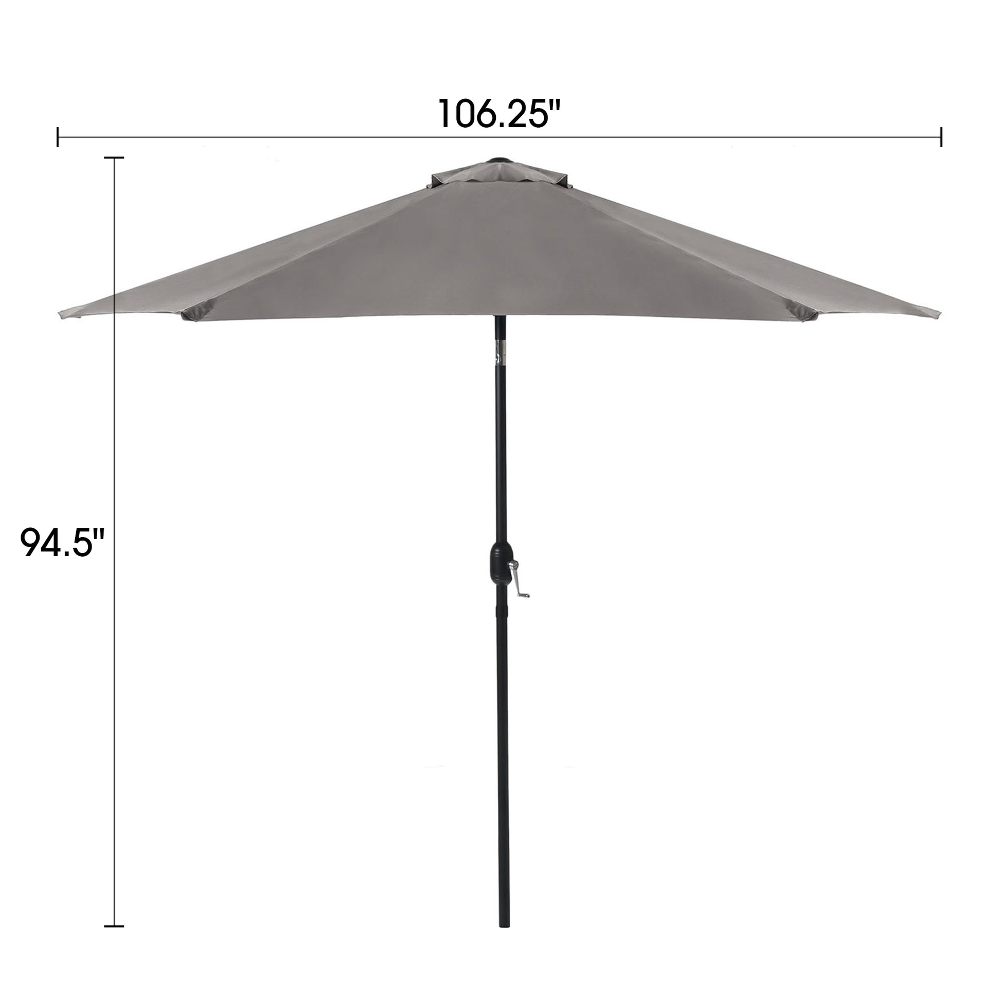 Elevate your outdoor comfort with this 106" modern round tilting patio umbrella in a sleek Graphite finish. Designed with a sturdy steel frame and durable polyester canopy, this umbrella offers reliable UV 50+ protection for sunny days. The articulated joint allows you to tilt the umbrella up to approximately 30°, ensuring customizable shade throughout the day. Ideal for patios, decks, or poolside lounging, this umbrella requires a compatible base (not included) for secure placement.