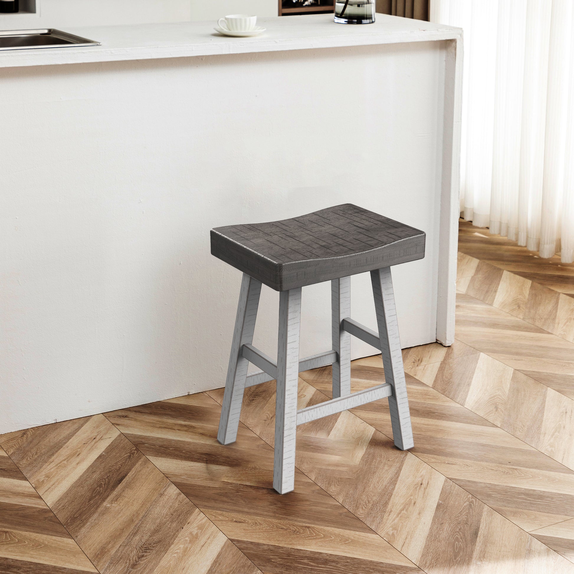 17.5"W x 13"D x 24"H Modern Gray White Solid Wood Stool with Contour Seat