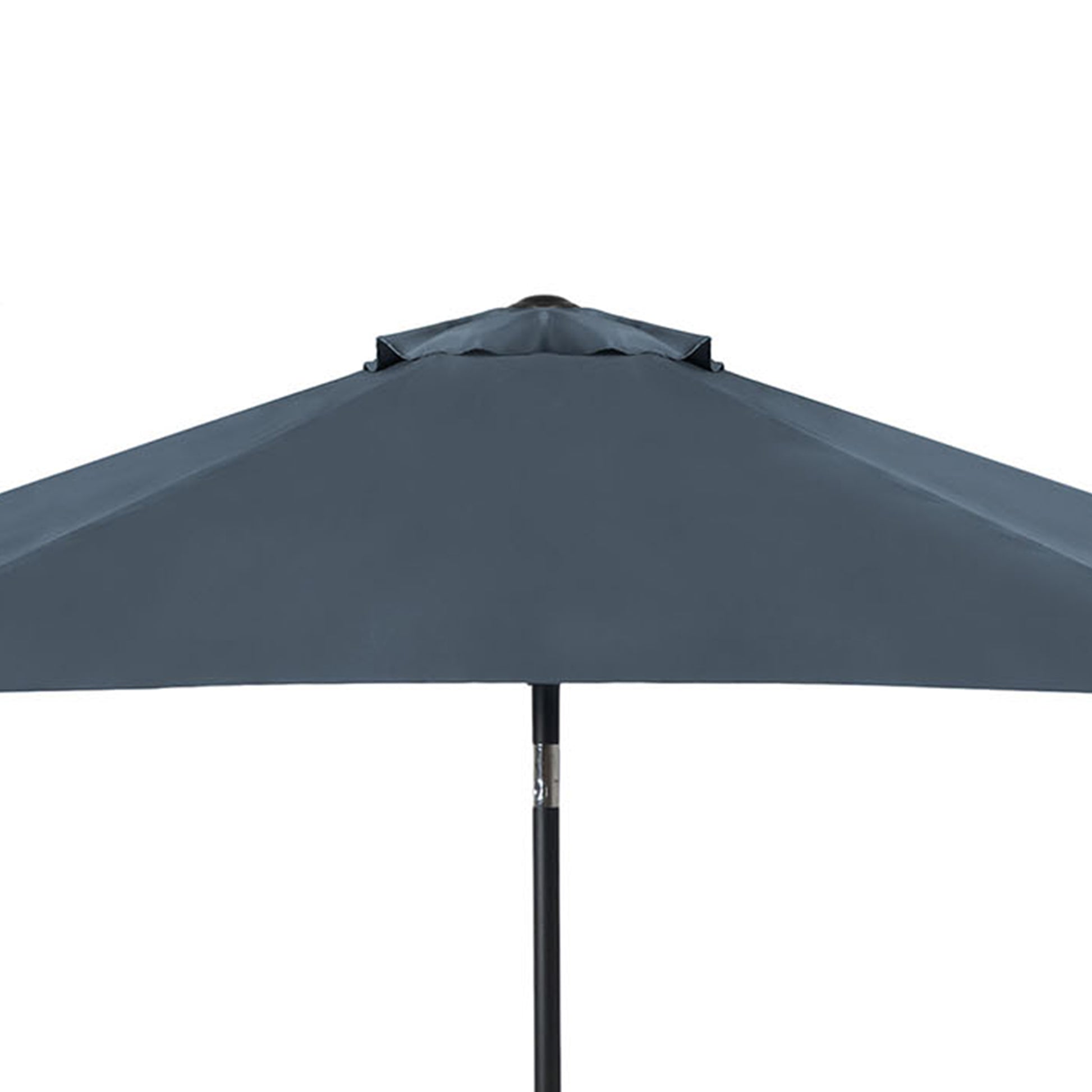 Add modern elegance and shade to your outdoor space with this 106" round tilting patio umbrella in a deep dark sapphire finish. Crafted with a durable steel frame and UV 50+ polyester fabric, it features an articulated joint that allows the umbrella to tilt up to 30°—so you can enjoy comfort at any time of day. The wide canopy offers ample sun protection, while the sleek design makes it a perfect fit for patios, gardens, or poolside settings. Umbrella base required and sold separately.