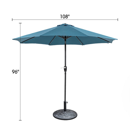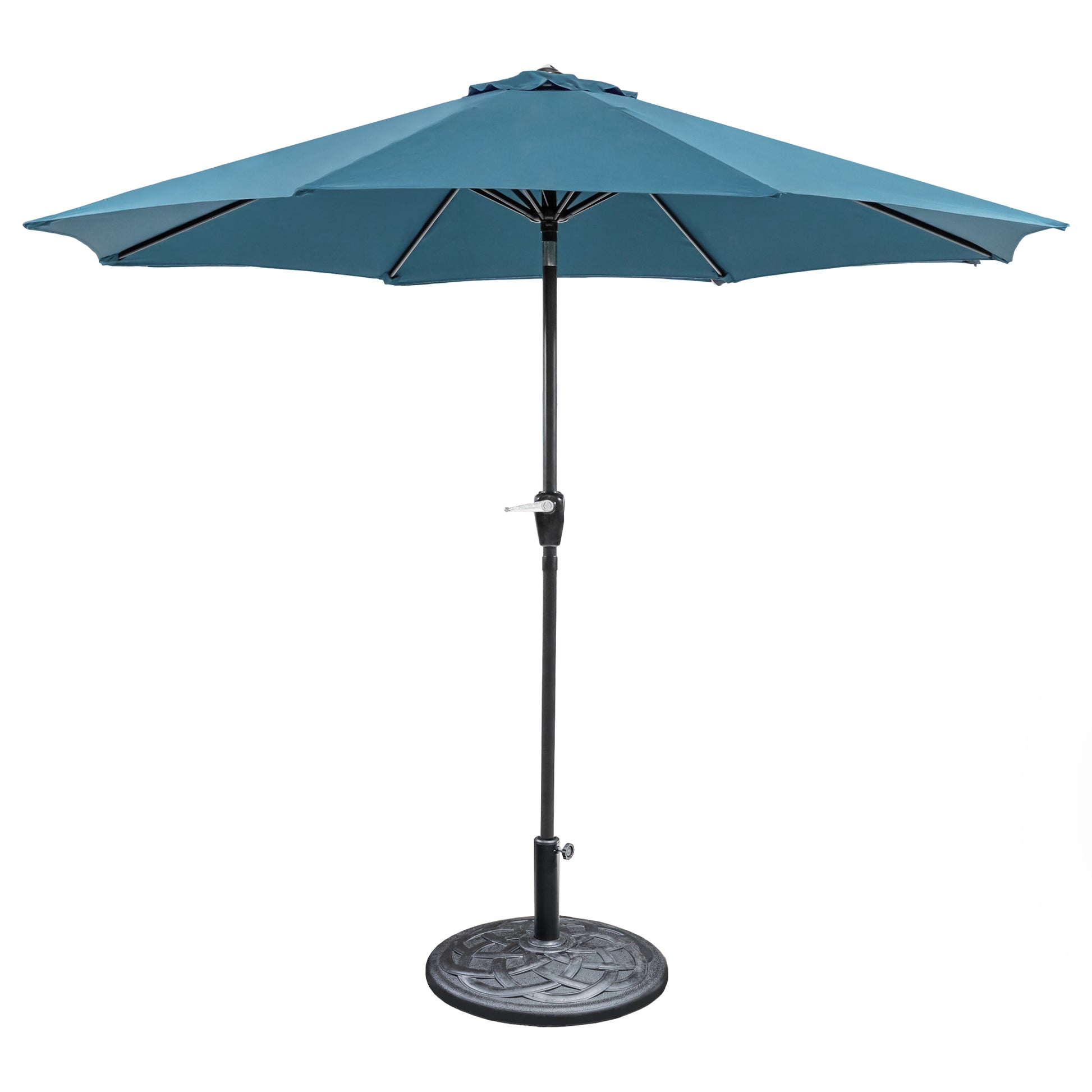 9' Blue Outdoor Patio Umbrella with Auto Tilt and 21" Round Base Included